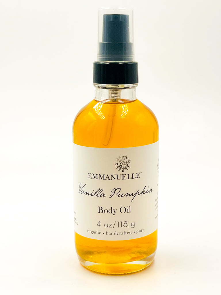 Body oils are designed to support and enhance the integrity and health of the skin on the whole body. Our Organic Vanilla Pumpkin Body Oil is rich in linoleic acid, oleic acid, carotenoids. It is calming and hydrates, nourishes, repairs, and strengthens the skin, perfect for the fall season.